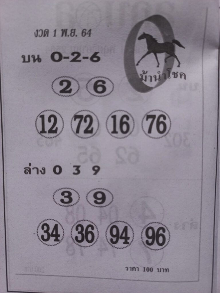 หวยม้านำโชค 1/11/64 รวมหวยซองดีมีคุณภาพ
