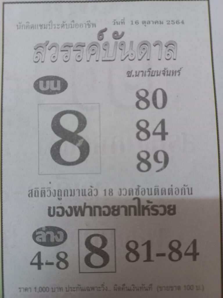 หวยสวรรค์บันดาล 16/10/64