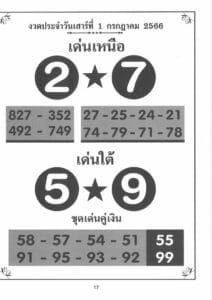 หวยเด่นเหนือใต้ 1-7-66 แนวทางหวย สลากกินแบ่งรัฐบาลไทย ฟรี !