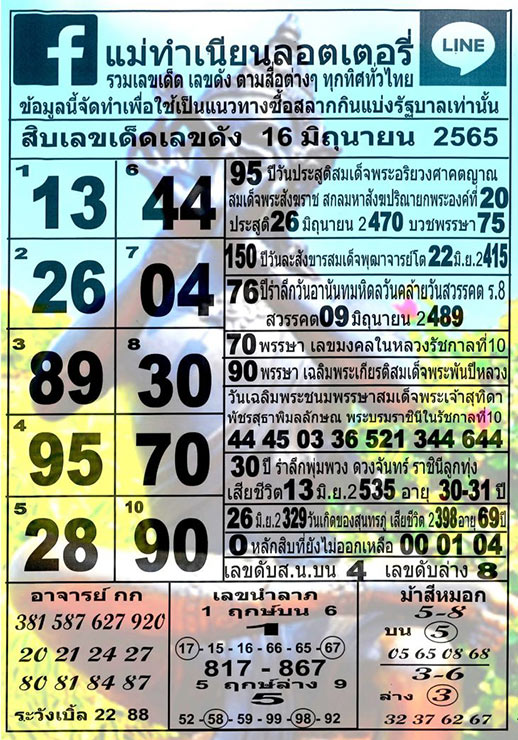 เลขเด็ดออนไลน์ แม่ทำเนียนลอตเตอรี่ แนวทางสลากกินแบ่งรัฐบาลไทย จากสำนักดัง งวดวันที่ 16/06/2565 มาแล้วค่ะ