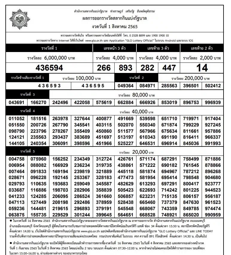 ใบตรวจหวย1-08-2565 ผลรางวัล สลากกินแบ่งรัฐบาล งวดประจำวันที่ 1 สิงหาคม 2565