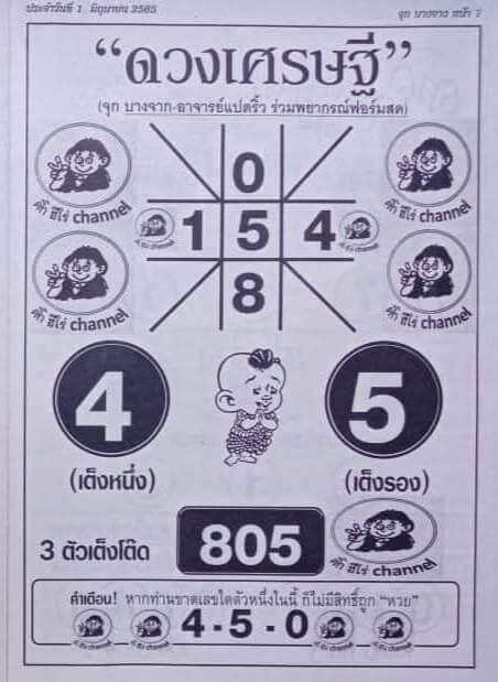 หวยดวงเศรษฐี 1/6/65
