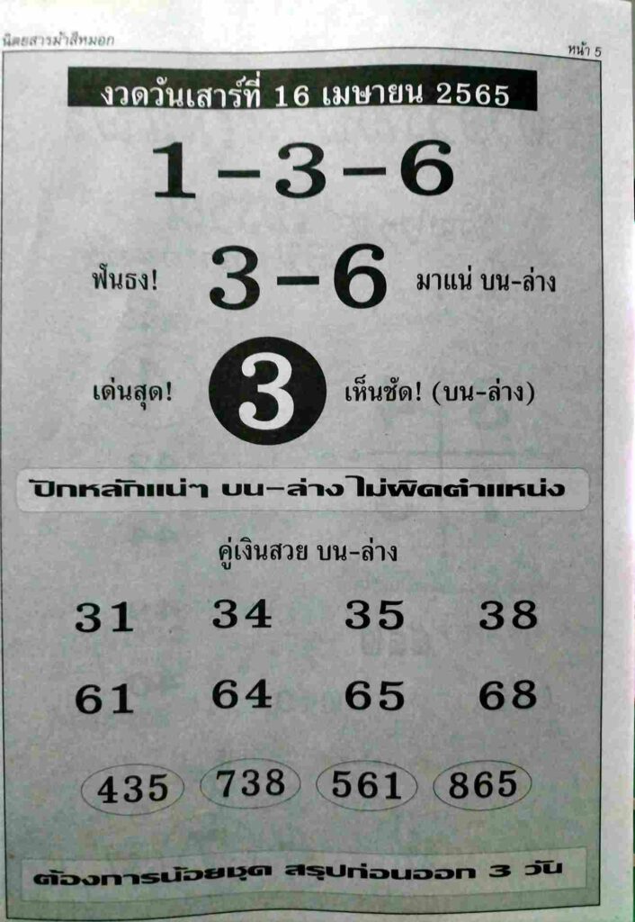 หวยปักหลักแน่ๆ 16/4/65