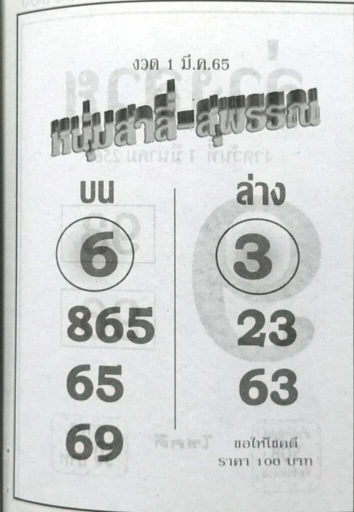 หวยหนุ่มสาลี่สุพรรณ 1/3/65