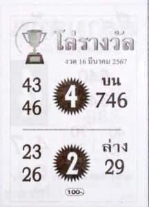 หวยโล่รางวัล 16-3-67 การันตีหวยซองดังเลขแม่นๆ แบ่งปันความรวย ไปชมกันค่ะ