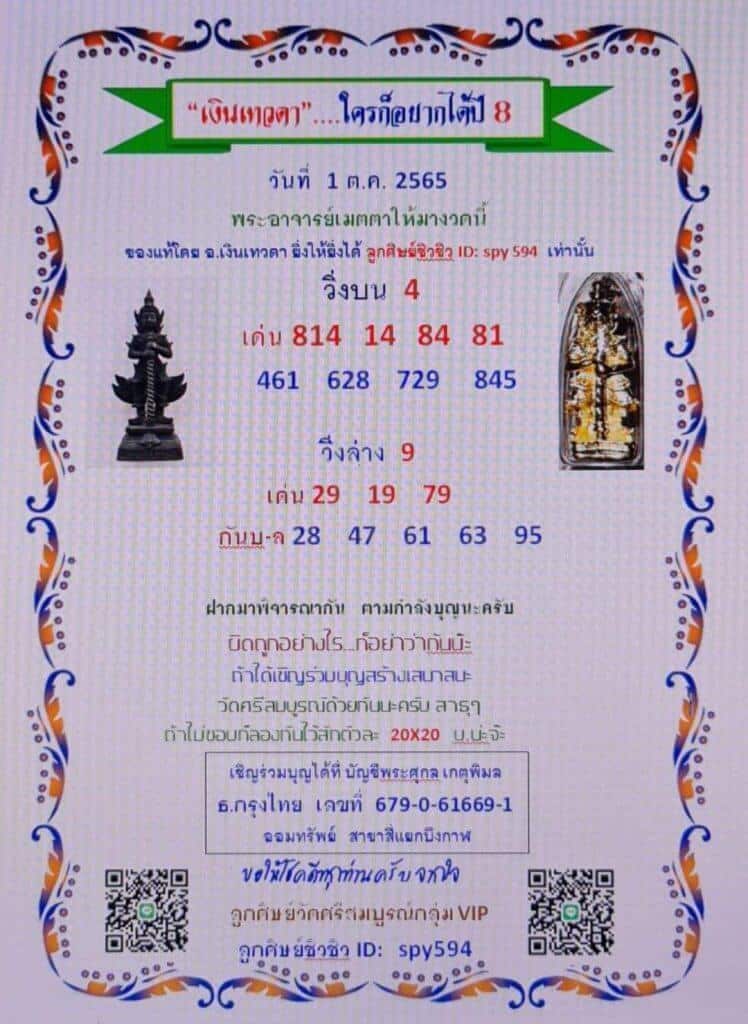 เลขเด็ดออนไลน์ หวยเงินเทวดา16-10-65 แนวทางหวย สลากกินแบ่งรัฐบาลไทย ฟรี!