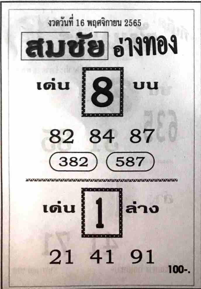 เลขเด็ดfacebook หวยสมชัยอ่างทอง16-11-65
