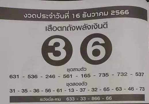 เสือตกถังพลังเงินดี 16-12-66 เพื่อการลุ้นหวยรัฐบาลไทย พร้อมโอกาสถูกหวย แจกหวยไทยงวดนี้ ส่งตรงพิเศษ คลิกชม !