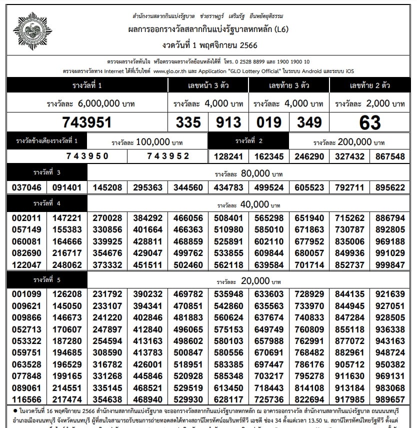 ใบตรวจหวย 1-11-66 ตรวจผลรางวัล สลากกินแบ่งรัฐบาล งวด ประจำวันที่ 1 พฤศจิกายน 2566